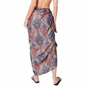 Beautiful delicately printed Indian stole, in polyester, silky effect, with traditional Indian design, very detailed. Fluid fabric, very soft. Typical Indian scarf, very stylish, blue, pink, yellow, purple colors.Can be used as a pareo.