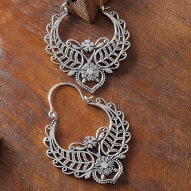 Pair of Indian ethnic earrings. Indian traditional jewel made of silver brass, finley crafted. Indian ethnic or gipsy design, nice and elegant.