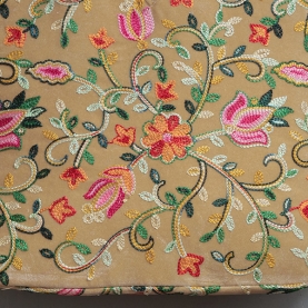 Very fashion. Finely embroidered handbag with zip and 1 inside pocket. Beige color, great size. Fashion accessory in India. Indian bag for women, colored and decorated, Indian fashion item.