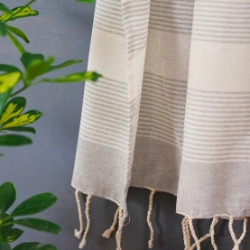 Pure cotton, beautiful Indian beach towel, hand-woven. Pretty elegant style towel, grey and ecru, with a soft and comforting touch. Good quality product, traditional manufacturing in India.Can also be used as a fouta or sarong towel!