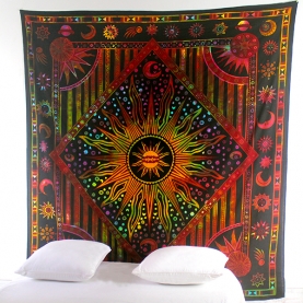 Indian decorative cotton wall fabric, Indian starts design. Indian wall hanging black and colorful. Traditional Indian house decoration, handicraft.