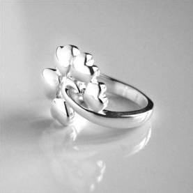 Bague indienne en argent, très belle et moderne. Très beau bijou de créateur indien en argent poli, design formé de 5 petits coeurs, matière et  travail de haute qualité