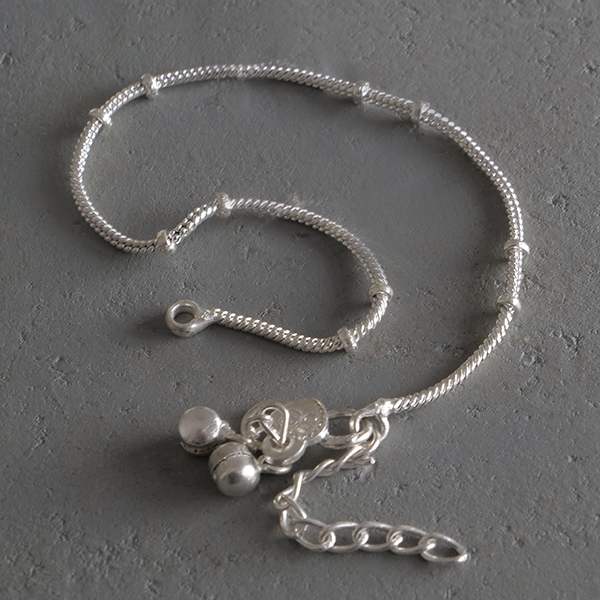 Chaîne de cheville indienne simple et chic. Bracelet de cheville en métal argenté, finement orné. Fermeture indienne en S, avec petits grelots. Bijou traditionnel appelé Payjeb en Inde (hindi), chevillière de fabrication artisanale.