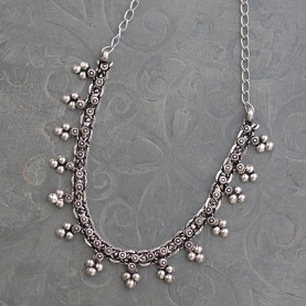 Collier plastron ethnique style fleuri. Beau bijou indien en métal argenté. Collier indien de fabrication traditionnelle au design gipsy ou bohème. Très à la mode en Inde. Longueur ajustable.