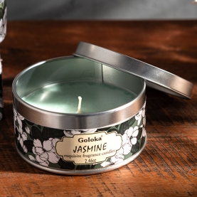 Bougie indienne parfum de fleur de jasmin, à la cire végétale de soja. Bougie ayurvédique fabriquée en Inde, coulée dans une jolie boîte en métal. Cette bougie indienne parfumée au jasmin est idéale pour pour la méditation ou les prières (pujas).