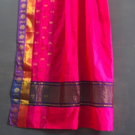 Le jupon assorti au Sari est ici en taille unique, muni d'une ceinture il se serre, s'ajuste à la taille et se noue.